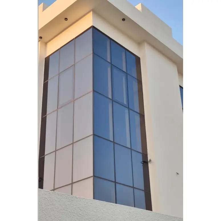El marco principal está fabricado en aleación de aluminio de alta resistencia 6063-T6, con ventanas de doble acristalamiento templado de serie. Las actualizaciones de ventanas laminadas templadas de doble acristalamiento o ventanas de doble acristalamiento de baja emisividad están disponibles a pedido. El grosor y el color del vidrio también se pueden personalizar para adaptarse a diferentes necesidades arquitectónicas.